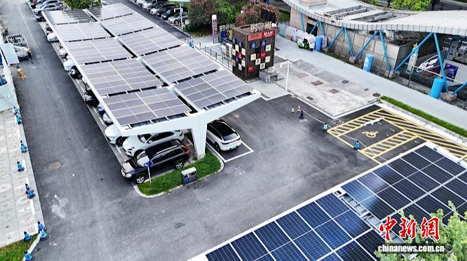 图为位于天河体育中心停车场上的光伏阵列。中新社记者 何俊杰 摄
