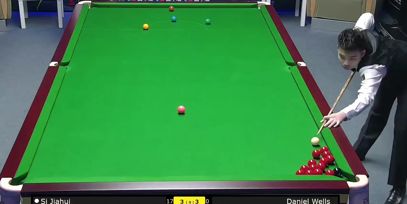 世界第16斯佳辉大比分3-5爆冷不敌排名赛四强选手丹尼尔·威尔斯,他在大比分0-3落后之下连扳三局,其中打出全场单杆最高分131分,却在势头正盛的时候自乱阵脚,第七局球形已经扎堆如下图,斯佳辉竟然没有同意丹尼尔提出的重摆,白白让自己积累的手感在这无意义的相持中虚耗!更有甚者,提议得不到同意的丹尼尔在一边喋喋不休颇有微词,而斯佳辉受其干扰自己把黑球给打进了!丹尼尔就此连下两局致胜。