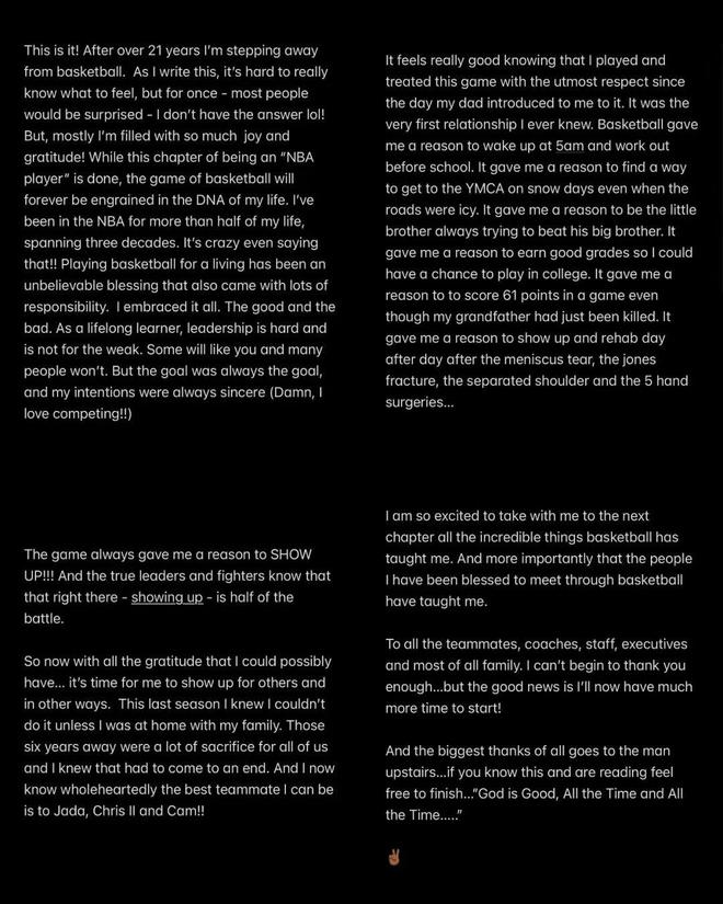 昨天深夜的消息,猛龙官宣裁掉保罗,随后没多久,保罗就在社交媒体上发布长文,正式宣布退役,结束自己21年的传奇NBA生涯。