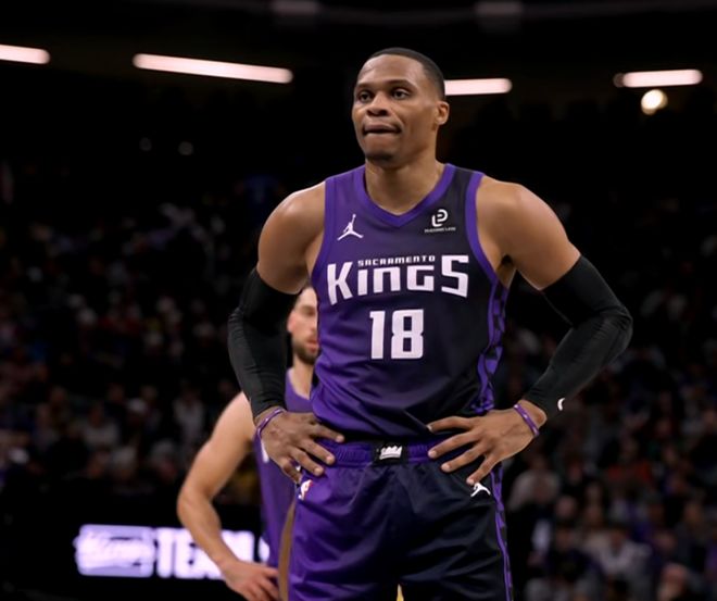 而就在这次反击过程当中,詹姆斯再次犯下大错,在防守端眼神防守,直接漏人。对面蒙克接到球原地干拔的时候,詹皇站在原地跳都没跳,连手都不伸,看着蒙克在他脸上命中三分,把分差重新变成13分。短短13秒,8分分差变13分,詹姆斯先是一次致命失误白送球权,回来又不防守,看着对面在他脸上投中3分,一攻一防,葬送球队。