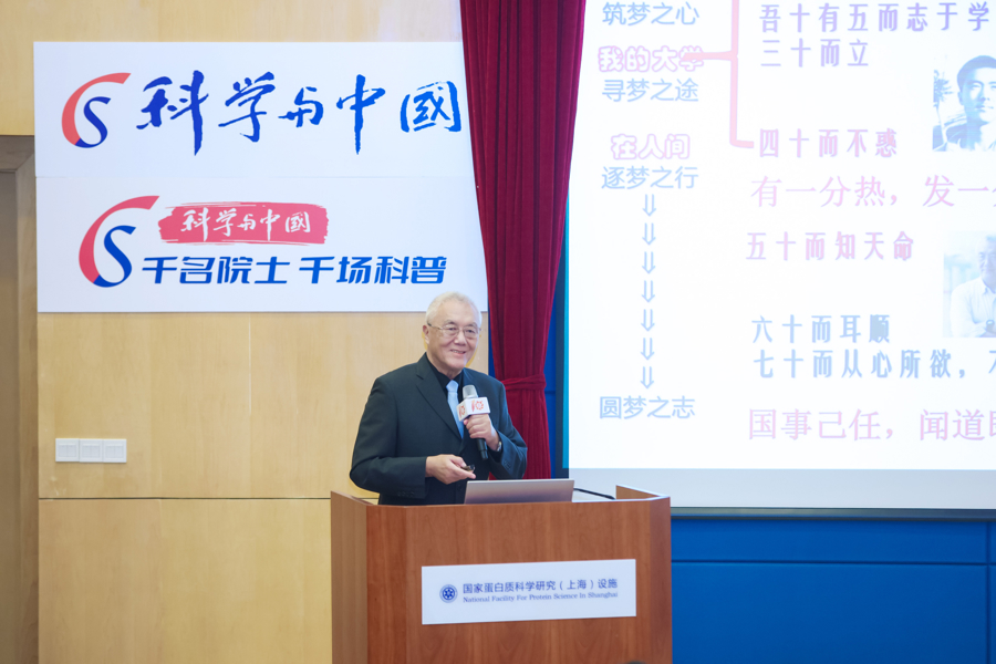 回顾自己的科学生涯,赵国屏做了四条总结:一是要“胸怀大志”,又包含三小点,要放眼世界,有正确的思维;要有阳光人生,有正确的人生观;没有一个人可以从开始就正确,所以“改造自我”亦很重要。二是要“勇担重任”,同样包含三小点,要当仁不让,世界上有很多重要的事,很多人都追着做,这就变成了内卷,可你如果发现某件事很重要却无人做,那一定是很难办的事,这时你愿意当仁不让吗;还有两小点是“锲而不舍”和“认真学习”。三是要“仰望星空”,这是指我们想问题的方法,不能一听就信,也不可一听就不信,要有自己的思考。最后一条,是“脚踏实地”——这是做事做科学的态度。