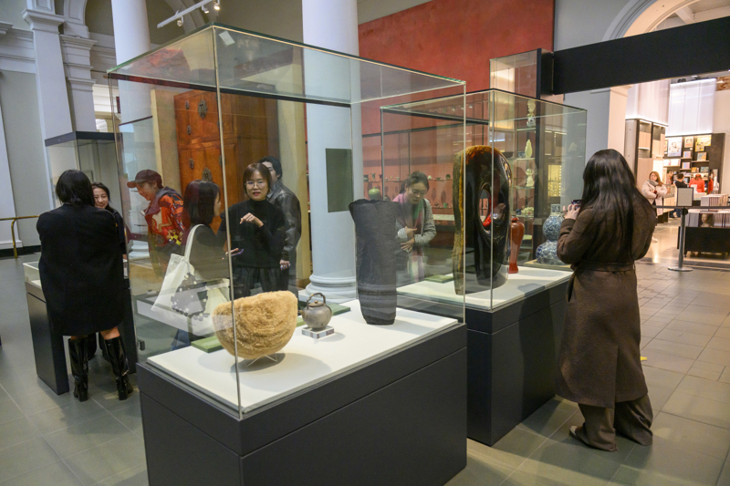 10月27日,在英国伦敦维多利亚与阿尔伯特博物馆(V&A),人们在《多维:中国当代工作室工艺》展览媒体预展上参观。新华社发