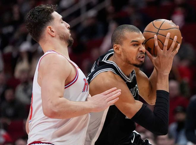 全场比赛,杜兰特24分6助攻,申京18分10篮板7助攻,伊森10分6篮板,阿门25分6篮板4助攻。火箭队这场比赛输在防守端。文班亚马26分16篮板3助攻2抢断5盖帽非常强势。