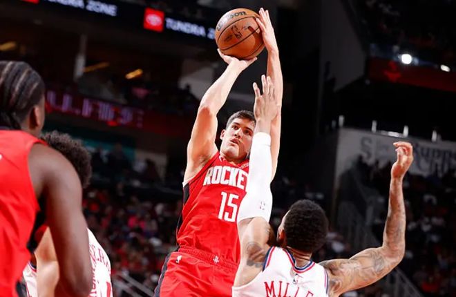 本场比赛中,火箭的替补后场新星里德-谢泼德(Reed Sheppard)的表现还算是中规中矩。谢泼德全场出场29分33秒,投篮10中6,三分线外6中4,得到了16分6篮板4助攻2抢断1盖帽的数据,还有4次失误和2次犯规,正负值为-5。谢泼德在本场比赛中保持了稳定的手感,他的进攻效率相当不错,他也是命中了多记三分,在进攻端起到了不小的作用,得到了不少分数。谢泼德在传球和组织方面的表现也还算还有一定的亮点,也是起到了一定的效果的。谢泼德在防守端的表现其实也并没有那么糟糕,虽然防守能力确实是存在着一定的问题,但是他的防守意识其实还不错,他也是送出了一些抢断。当然了,如果谢泼德能够减少自己的失误数,他在场上的表现还会更加出色。