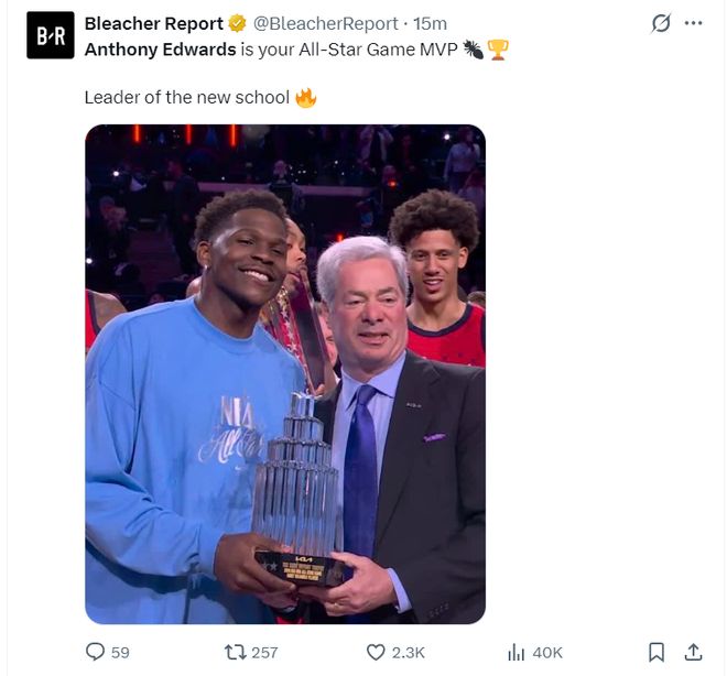 自2020年后NBA官方将全明星MVP奖杯更名为科比-布莱恩特奖杯,华子这下真的成了科比接班人,因为华子跟科比都是得分后卫,这也是华子职业生涯首个AMVP。
