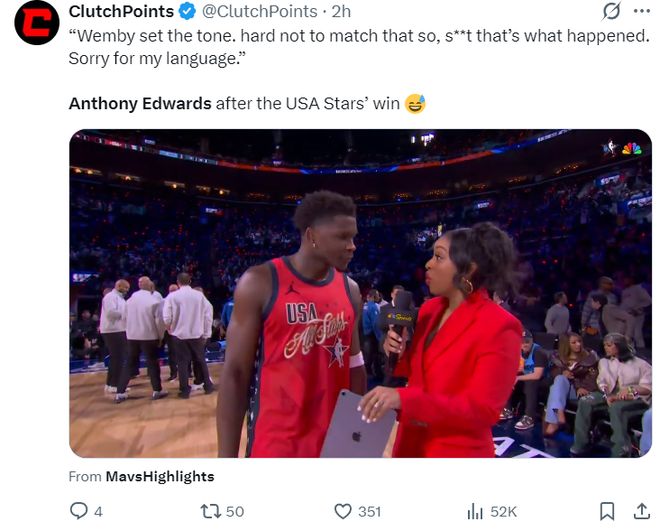 在全明星正赛前,文班亚马的AMVP概率是最高的,爱德华兹只有9%,最终他却带队夺冠拿到了AMVP。