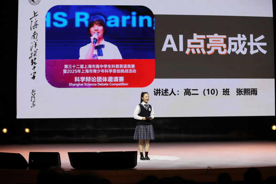 南洋模范中学师生以“AI点亮校园新生活”为主题,以“突破”“浸润”“创生”三个关键词,用三个生动场景,展示了一线师生在教育教学中如何运用人工智能的思考与实践探索,让五育融合有了新载体,让校园成为孕育创新、包容试错的成长土壤。