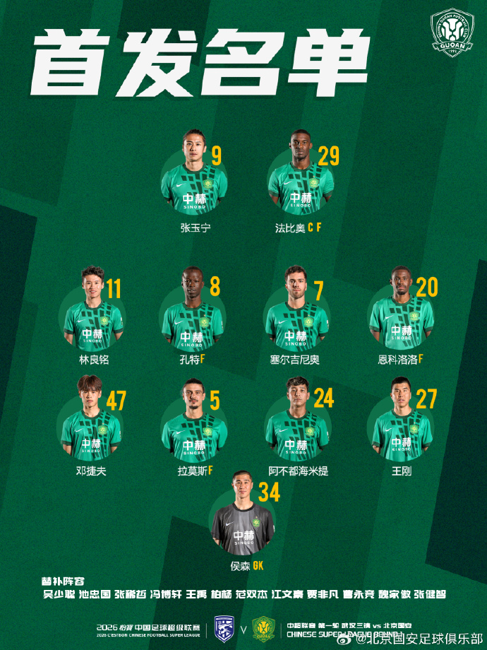 3月8日晚19点,2026赛季中超联赛第一轮的最后一场较量在武汉体育中心体育场打响,武汉三镇坐镇主场迎战北京国安。上半场,王刚助攻法比奥打进国安本赛季联赛首球;下半场,方镜淇禁区外玩火,王刚再度助攻,张玉宁破门。最终,北京国安客场2-0战胜武汉三镇,取得联赛开门红,积分升至负2分,武汉三镇积分仍为负5分。