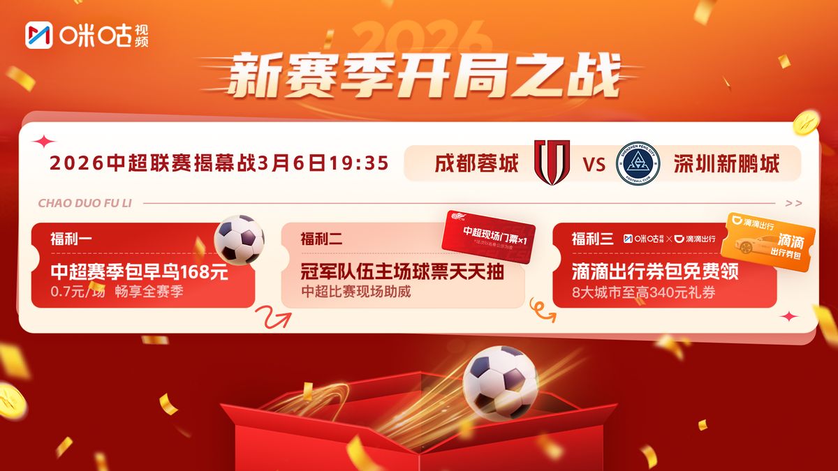 3月6日19点35分,2026赛季中超揭幕战将正式开打,成都蓉城坐镇主场对阵深圳新鹏城,代表新赛季中超扬帆起航。作为全场次转播中超赛事的新媒体平台,咪咕将全程陪伴球迷见证这场比赛的精彩瞬间。近年中超联赛历经后金元时代的转型与调整,回望过去五个赛季的揭幕战,既承载着球迷的期待,也折射出联赛格局的变迁。