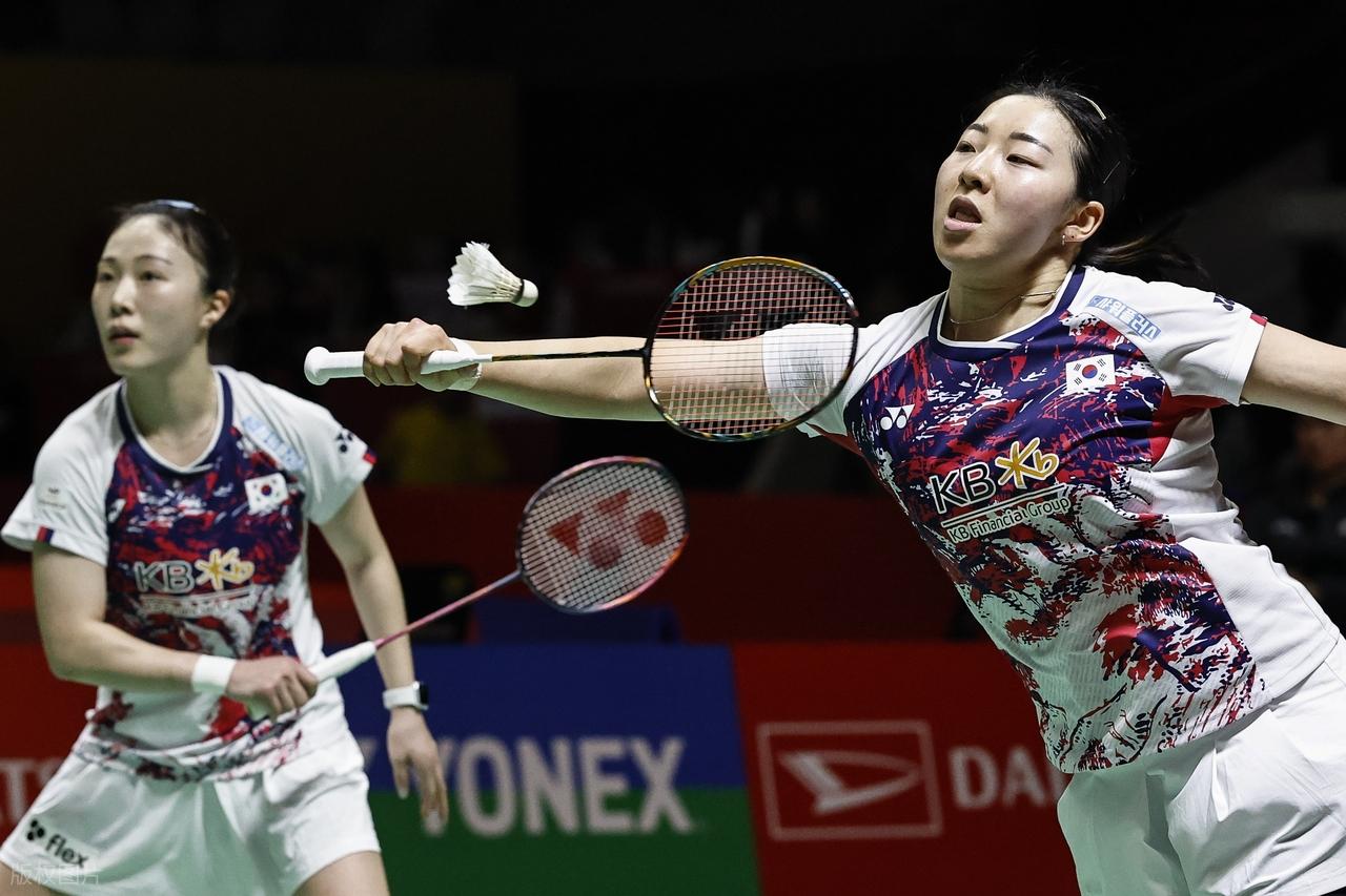 随后进行女双的决赛,依然是中韩之争,贾一凡/张殊贤对阵金慧贞/孔熙容,双方过去四次交手都是韩国组合获胜,都在今年的比赛。金慧贞/孔熙容在前三轮都是战胜日本组合,半决赛击败世界第一圣谭组合。贾一凡/张殊贤在前面的发挥也不错,尤其是半决赛横扫韩国的李白组合。