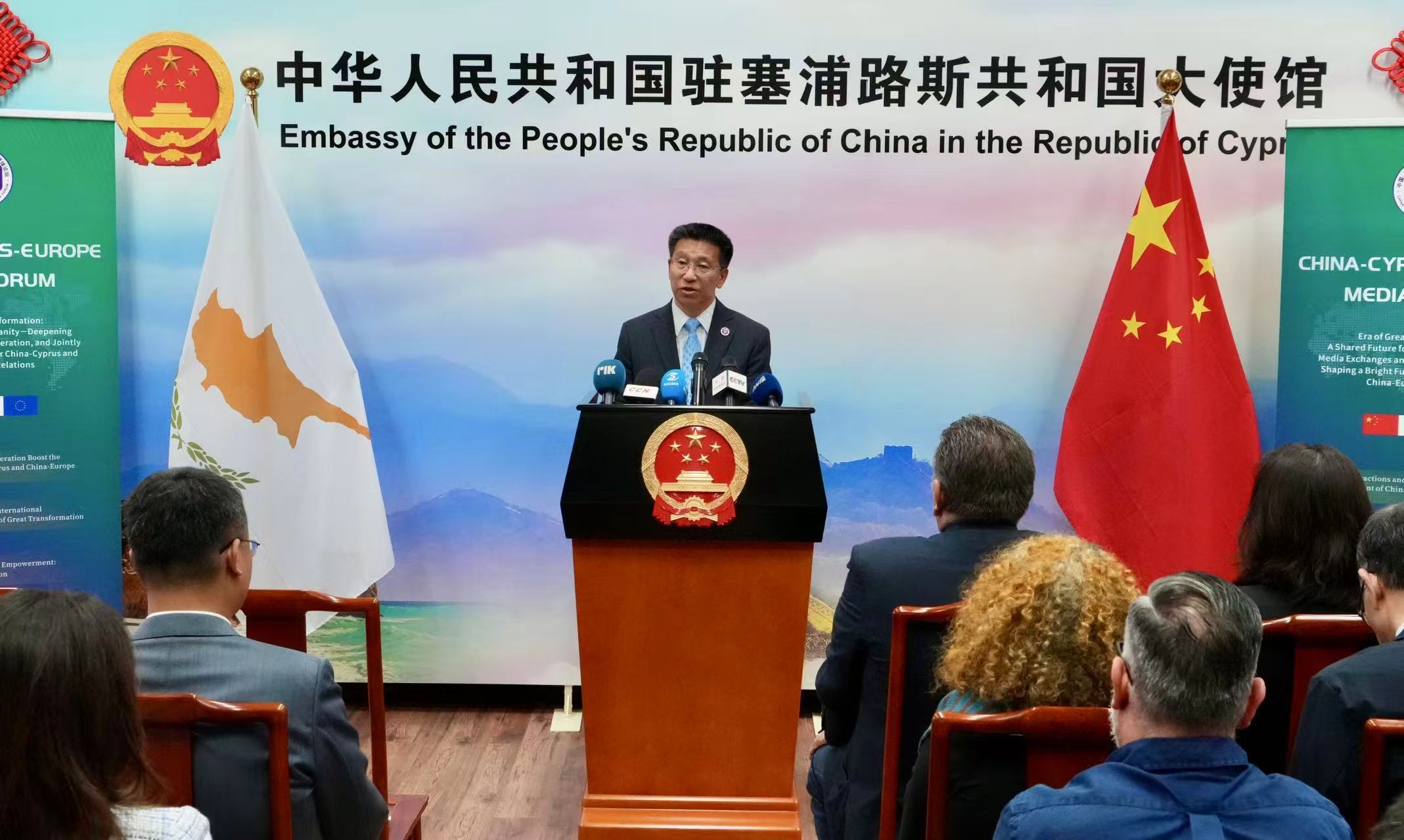 中国驻塞浦路斯大使刘彦涛在致辞时表示,中国和欧洲媒体应持续深化交流、拓展合作,共同讲好中塞、中欧合作故事,开创中塞、中欧媒体合作新篇章。
