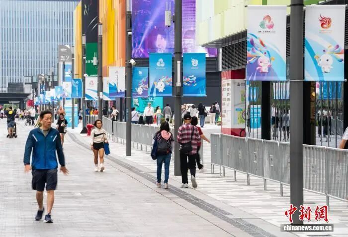 11月1日,香港新晋地标启德体育园的体育大道沿途遍布第十五届全国运动会(简称“十五运会”)装饰宣传元素,静待本届全运会于11月9日正式开幕。中新社记者 侯宇 摄