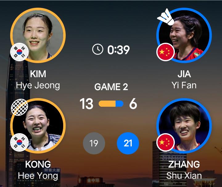 此番对决,首局韩国组合在0-1落后之下连得五分一举反超,随之又打了一波6-0,一度取得11-3的领先!贾一凡/张淑贤回敬一波8-1迫近比分14-14,又在14-15落后之下连得五分一举反超并将优势保持到最后,20-16率先获得局点,21-19实现单局大逆转。次局韩国组合在3-4落后之下打出一波10-1的攻势一举反超并将优势保持到最后,21-16扳回一局。决胜局开局2-2,贾一凡/张淑贤连得四分率先起势并将优势保持到最后,一波8-1的攻势取得18-9的领先,21-13再下一城。大比分2-1夺得国羽本站首金,恭喜张淑贤首夺高级别巡回赛冠军!