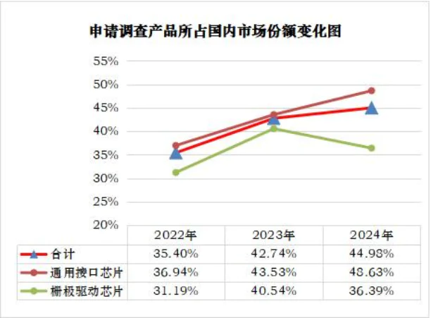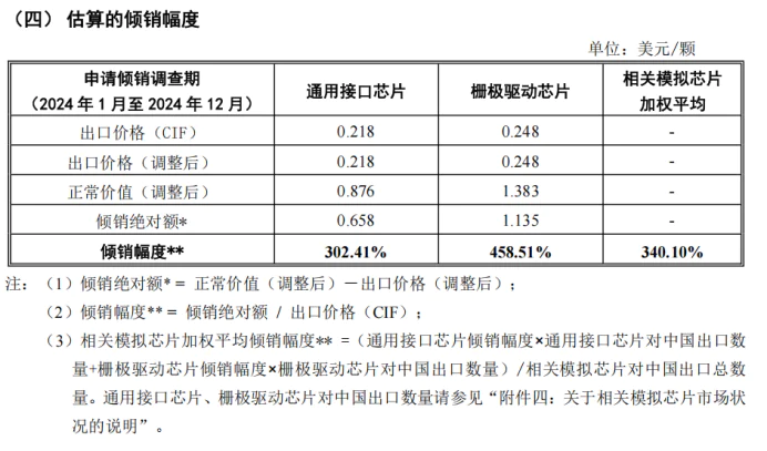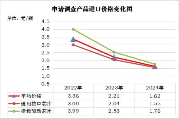根据江苏省半导体行业协会提供的申请书,美国企业德州仪器、ADI、博通、安森美等四家公司,在对中国的相关产品累计增长37%,进口价格累计下降52%,压低和抑制了国内产品销售价格,对国内产业的生产经营造成损害,包括毛利率低、开工率低等问题。